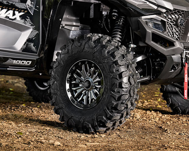 Revised for 2025, the Wolverine RMAX2 1000 XT-R's advanced heavy-duty suspension is designed to provide maximum articulation in low speed situations, achieving both chassis control and bump absorption when trail riding and maximum bottoming resistance at higher speeds. The wide-arc A-arms paired with the FOX® 2.0 QS3 shocks deliver 360mm of travel up front and an amazing 430mm of travel in the rear. The FOX® 2.0 QS3 shocks can be easily switched—without tools—between three custom positions to enhance comfort during relaxed driving, increase damping for normal trail riding and maximise damping during sport driving.