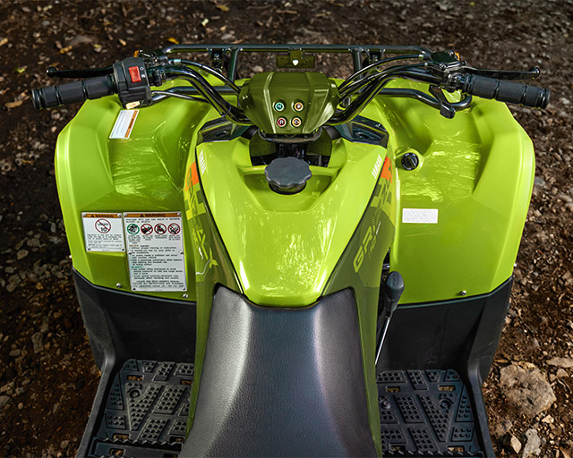 To help young beginners grow into accomplished ATV riders, the Grizzly 110 includes both an electronic limiter and throttle limiter to tailor the engine's performance to the rider's advancing skill level.