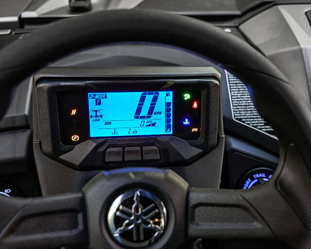 The Wolverine RMAX2 1000 Sport's class-leading Electric Power Steering takes a big step forward for 2025 with an all-new selectable EPS system that allows drivers to select between three different steering modes to match driving preference via a new dash-mounted switch. HIGH mode offers more assistance, best for low-speed maneuvers and relaxed riding. STANDARD mode is a great balance of light steering and positive feedback for trail riding. And LOW mode provides less assist for greater feedback and a sportier feel that’s perfect for higher speed riding. There’s also a differential lock setting that offers maximum steering assist when the front differential lock is engaged.