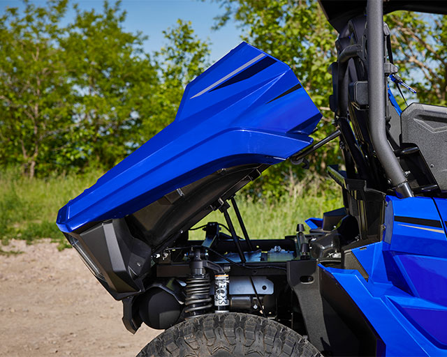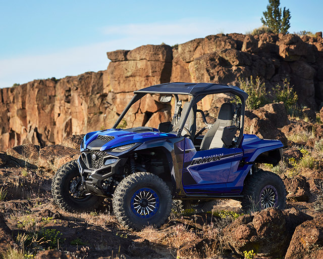 Super striking in Team Yamaha Blue with ultra stylish wheel accents, the Wolverine® RMAX™2 1000 Sport also offers a premium sport interior for comfort and style. With ultra-plush cut-and-sew seats in Yamaha Blue, both driver and passengers can tackle rugged backcountry adventures in ultimate comfort and style. Pair that with 3 drive modes and adjustable EPS and you're set for anything the terrain can throw at you.