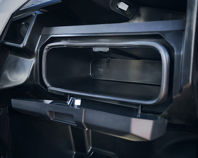 Large storage optimised to provide protection from the elements, the Wolverine RMAX 1000 XT-R features a sealed 2.7L centre console, a 5.5L sealed glove box, and centre console cubbies. Both occupants can also quickly access their belongings with driver and passenger storage shelves containing secure rubber mats to keep items in place and two easy-to-reach cup holders.