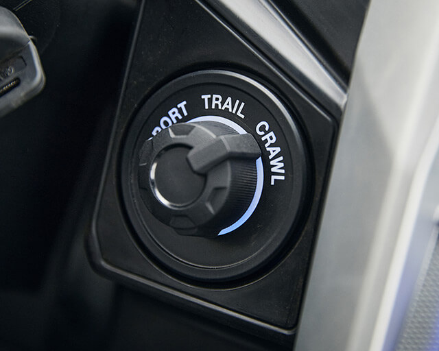 The advanced and heavy-duty suspension is designed to provide maximum articulation in low speed situations and a balanced feeling when trail riding. Wide-arc A-arms paired with high performance long travel FOX 2.0 QS3 shocks provide incredible bottoming resistance with smooth high speed damping. These units can be switched between three custom positions tool-free to enhance comfort during relaxed driving, increase damping for normal trail riding and maximise damping during sport driving.