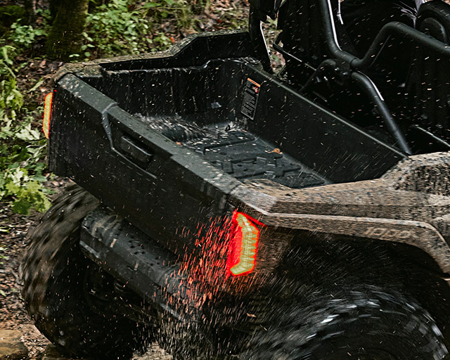 Stealthy, advanced LED headlights with lo and hi beam provide wide coverage for confidence-inspiring night time driving. LED marker lights showcase the XT-R's unique, sleek style while integrated LED taillight, brake light and reverse light keep you visible on the trail and enhance visibility when reversing.