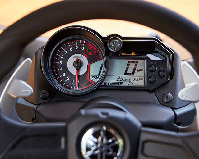 To ensure you can get out of even the toughest spots when far away from civilisation, the YXZ1000R SS XT-R features a WARN® VRX 4500 winch package mounted via a custom front grab bar. Since the winch package was engineered alongside the XT-R, the winch’s controls are integrated into the electrical system, putting the controls right where the driver needs them.
