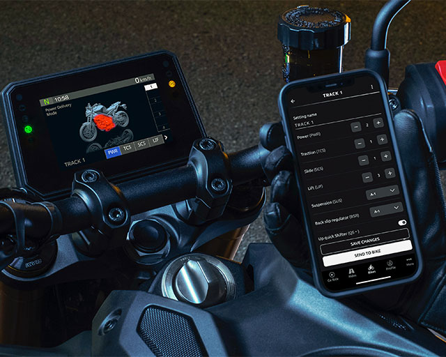 Developed from the R1, the compact six-axis IMU controls the MT-09SP’s high-tech rider aids including a three-mode Traction Control System (TCS), Slide Control System (SCS), front wheel Lift Control System (LIF) and Brake Control System. This best-in-class technology now features a Back Slip Regulator (BSR), which offers stabilisation when the rear wheel locks under excessive braking by controlling the level of torque produced.