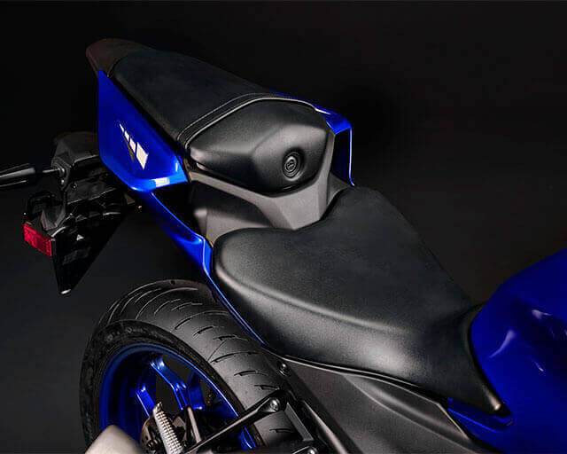 A narrow seat and slim side covers improve the rider's foot reach to the ground while retaining the YZF-R3's relaxed riding position.