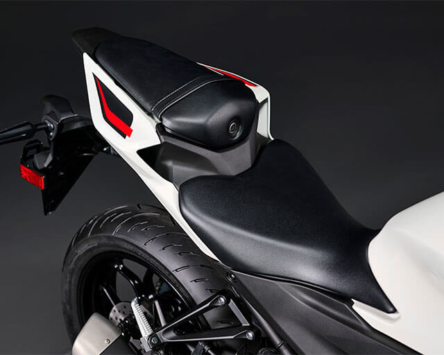 A narrow seat and slim side covers improve the rider's foot reach to the ground while retaining the YZF-R3's relaxed riding position.