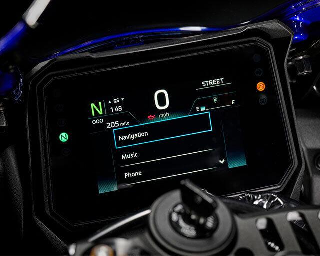 Riders can link their smartphone to the TFT display via Yamaha's free Y-Connect app to receive message notifications, calls and listen to music (through use of an aftermarket Bluetooth® headset, not provided). Additionally, full turn-by-turn navigation is available through the Garmin® StreetCross app to make each journey easier.