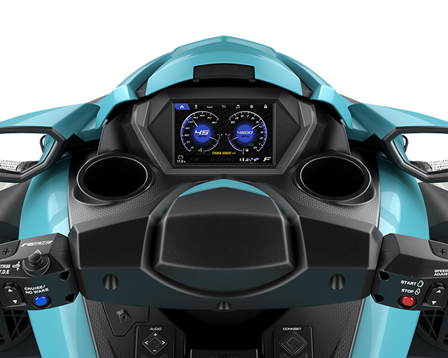 The electronic trim system allows the rider to quickly adjust how high or low the bow sits in the water, improving the crafts overall handling and on-water performance. This system can be engaged for improved cornering, carrying multiple passengers, towing or in rough conditions. *Prior year colour shown.