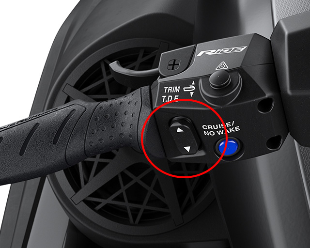 The electronic trim system allows the rider to quickly adjust how high or low the bow sits in the water, improving the craft's overall handling and on-water performance. This system can be engaged for improved cornering, carrying multiple passengers, towing or in rough conditions.