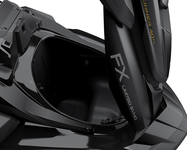 The FX Limited SVHO comes with factory installed Yamaha audio speakers, 7-inch full-featured infotainment system with a glass colour touchscreen and built-in GPS system*. This luxury craft also comes with smartphone integration, customisable Drive Controls with Auto Trim, a large glove box with a built-in light, USB and 12 volt charging ports, streamlined tilting handlebar with tie hooks, two pull-up cleats, three-person luxury theatre style seat and a hull that delivers an extremely comfortable and dry ride.