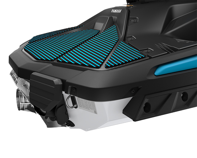 Above the waterline, sees Yamaha’s first-ever reinforced polypropylene deck, creating improved riding dynamics and a sharper and more aggressive look to the craft.