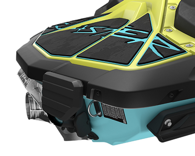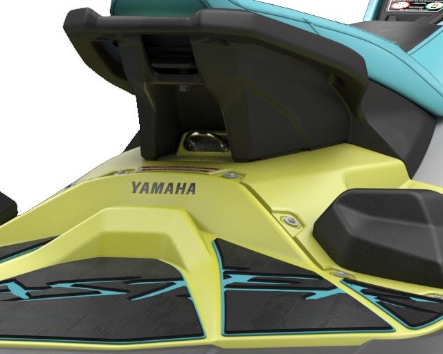 Above the waterline, sees Yamaha’s first-ever reinforced polypropylene deck, creating improved riding dynamics and a sharper and more aggressive look to the craft.