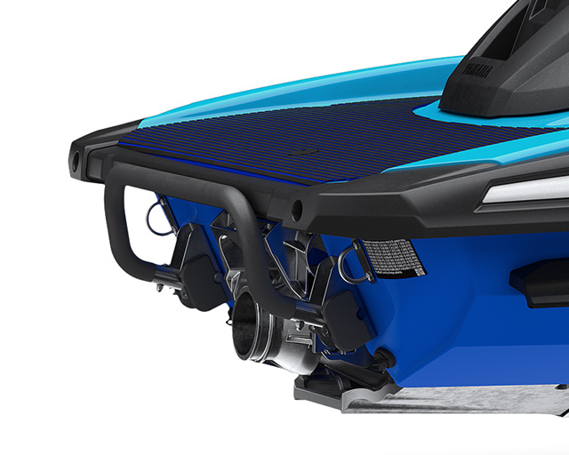 The deck design delivers improved rider ergonomics with deep and wide footwells and the narrow seat provides strong knee grip and more comfort. The hull features Yamaha's cutting-edge deeper V-shape Keel, modified hull strakes and softer bow chines, delivering excellent stability, nimble handling and precise responsiveness.